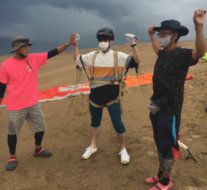 一夜明けて、早朝にパラグライダーもしました!空を舞って宙に浮く感じがとても気持ち良かったです!!