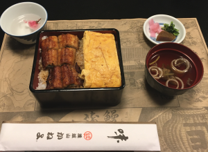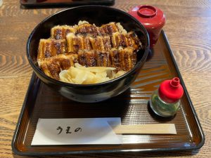 次は滋賀県の有名なうなぎのお店「かねよ」さんで「きんし丼」を食べました!うな重に厚焼き玉子がのっていて、さらに玉子の下にもウナギがおります!(^^)!初めての関西風うなぎは最高でしたb